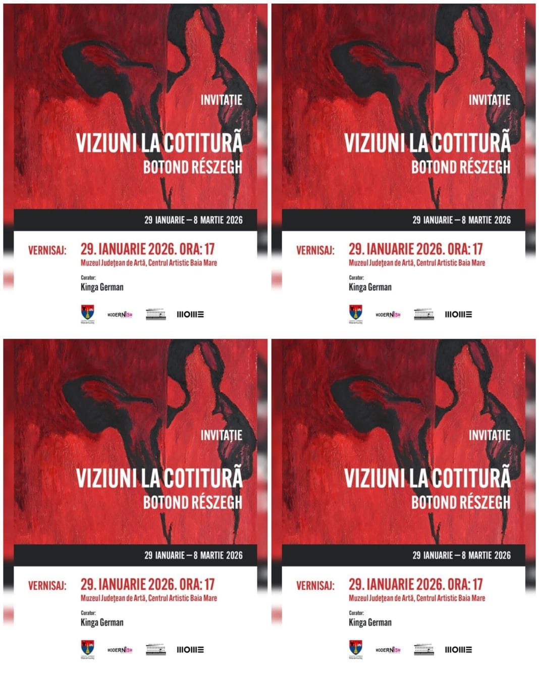 Vă așteptăm să descoperiți universul unui artist care transformă cotitura în viziune și tăcerea în semn, oferind privitorului o experiență estetică intensă și profund personală. Expoziția poate fi vizitată în perioada 29 ianuarie – 8 martie 2026, la sediul muzeului din str. 1 Mai nr. 8, Baia Mare.
