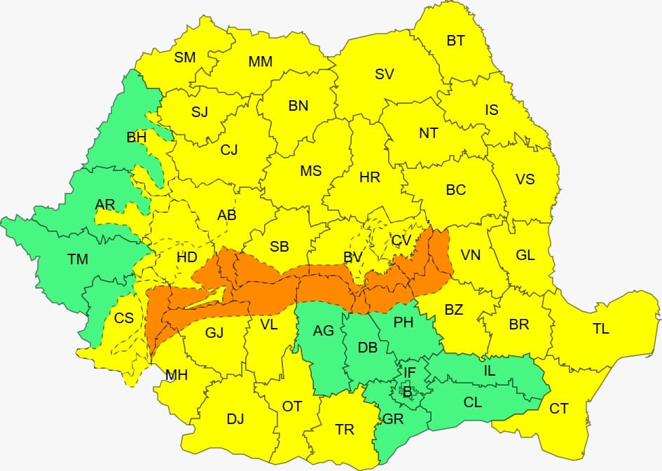 AVERTIZARE METEOROLOGICĂ – COD GALBEN