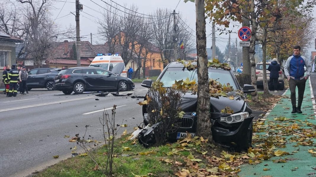 Potrivit informațiilor preliminare, un bărbat de 50 de ani nu s-ar fi asigurat corespunzător la ieșirea dintr-o parcare și a intrat în coliziune cu un autoturism condus de un tânăr de 20 de ani.
