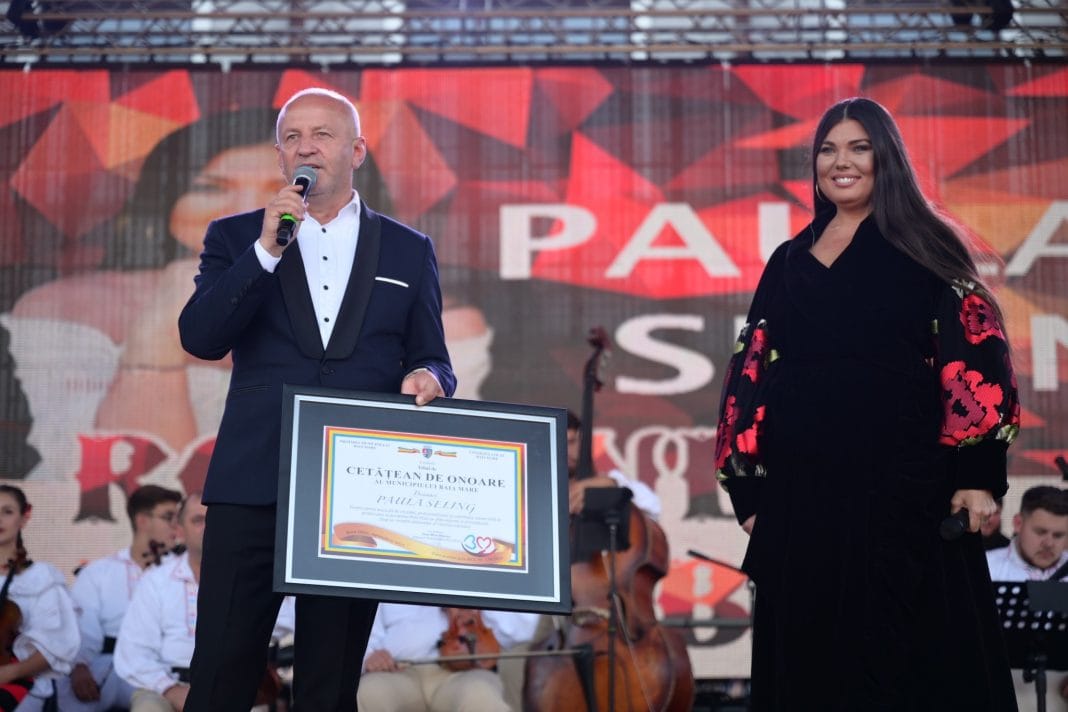 ”Eram alături de una dintre marile artiste ale orașului nostru, o voce care a dus numele municipiului Baia Mare pe cele mai importante scene ale lumii și care ne-a purtat în suflet cu mândrie peste tot. Am întrebat atunci dacă merită această mare artistă să fie numită Cetățean de Onoare al municipiului Baia Mare. Rezultatul a fost clar și sunt convins că majoritatea suntem de acord cu el. M-am ținut de promisiune și am propus Consiliului Local acordarea acestei distincții artistei noastre Paula Seling, proiect votat de către colegii consilieri. Ieri, tot pe scenă și tot cu ocazia unui moment special, de data aceasta aniversarea cu numărul 30 a Sărbătorii Castanelor, am avut onoarea să îi înmânez Paulei titlul de Cetățean de Onoare al municipiului Baia Mare, împreună cu un simbolic buchet de flori, în numele comunității noastre. Paula, îți mulțumesc că ești un exemplu pentru generațiile tinere de artiști, că îi îndrumi și îi sprijini, că ești mereu aici pentru orașul în care ai crescut, te-ai format și pe care și tu, la fel ca noi toți, îl numești acasă. Prin acordarea acestui titlu nu am făcut decât să consfințim ceea ce erai deja, un veritabil Cetățean de Onoare al municipiului Baia Mare!”, a subliniat Ioan Doru Dăncuș, primarul municipiului Baia Mare.
