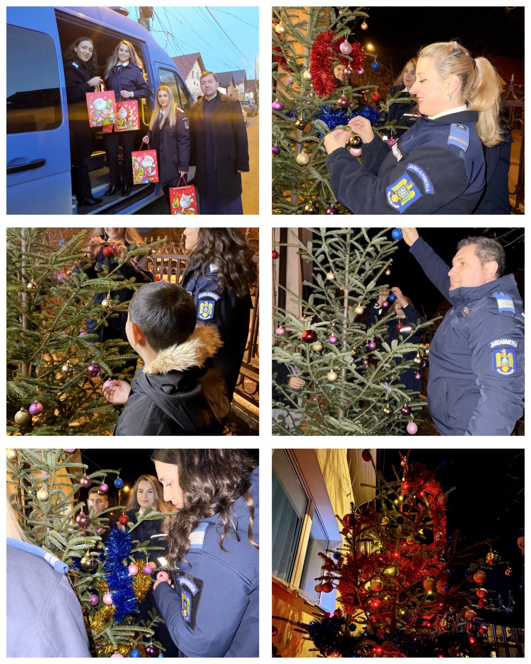 Ajuns la fața locului, echipajul de jandarmerie a identificat și legitimat mai multe persoane, colegi de-ai lor cu suflet mare, care au recunoscut că au procurat un brad, mai multe globuri, beteală și luminițe de Crăciun pentru a le oferi acestor copii minunați. Ba mai mult, ei au mărturisit că aveau de gând să asculte colinde împreună cu copiii, să bea un ceai cald și chiar să le ofere în dar momentul special al împodobirii bradului în familie.