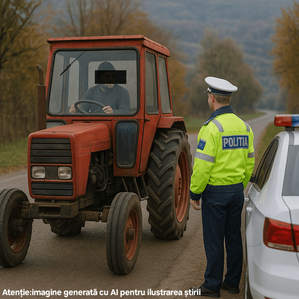 Polițiștii au verificat documentele personale ale tânărului, precum și cele ale tractorului condus, stabilind faptul că cel în cauză nu deține permis de conducere pentru nicio categorie de vehicule.