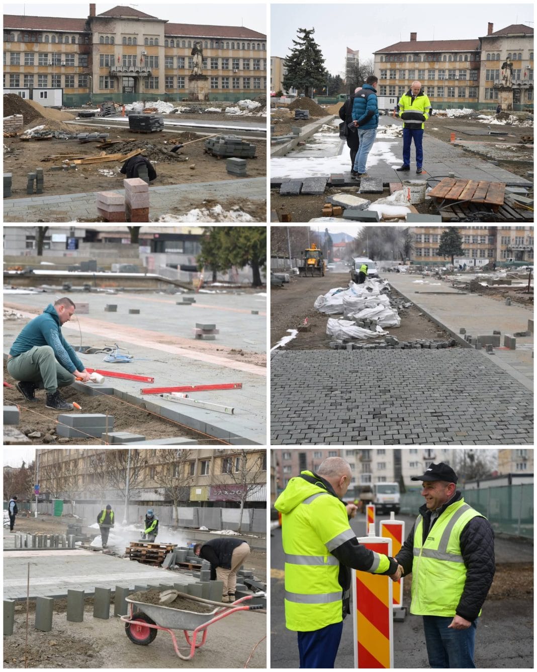 Utilajele și muncitorii au revenit pe șantier imediat ce vremea a permis continuarea lucrărilor, iar primarul a fost și el pe șantier.